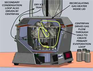 Synthetic and medicinal chemists will save time because the Centrifan™ PE dries samples without the monitoring required by a rotorvap. The system also works well for processing fractions collected from flash liquid chromatography. Pharmaceutical and university labs working with radioactive and other highly toxic compounds will appreciate the advantage of the green chemistry design.